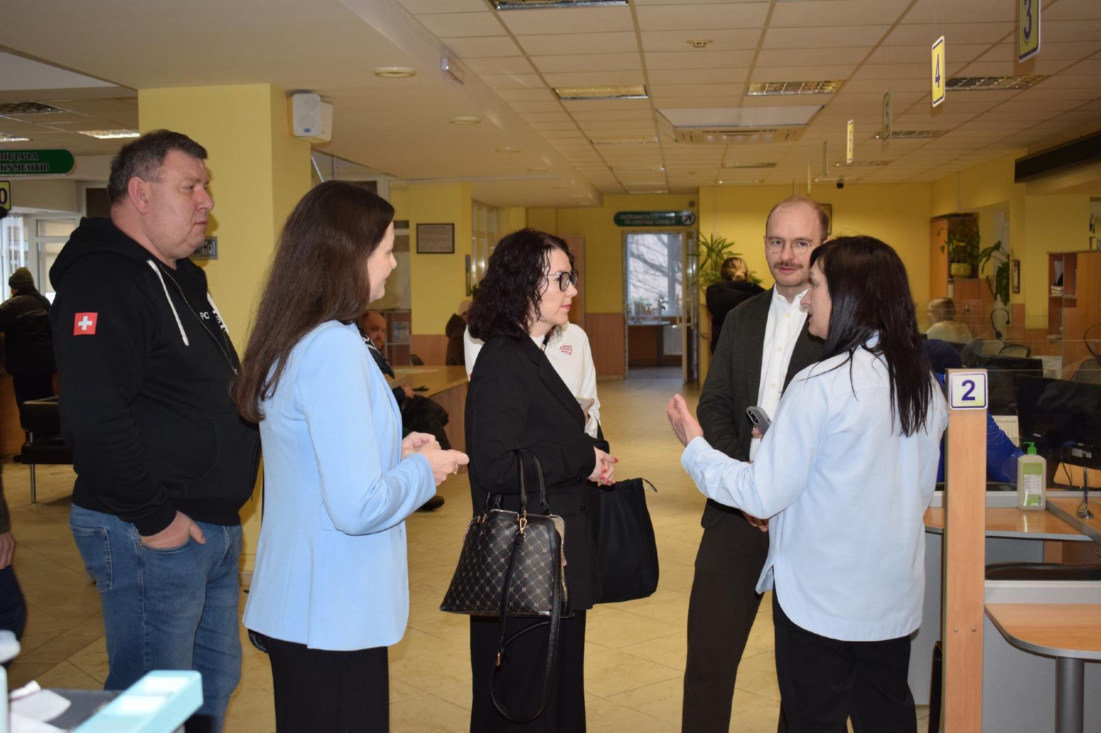 Це давні наші партнери, які технічно допомогли удосконалити процедуру надання послуг у ЦНАПі. Старша координаторка програм Посольства Швейцарії в Україні Ілона Постемська, програмний спеціаліст Посольства Алекс Зібер, координатор з цифровізації регіонів Програми EGAP Сергій Гунько та регіональна координаторка програми у Волинській області Оксана Киричук дізналися про результати впровадження спільних проєктів: